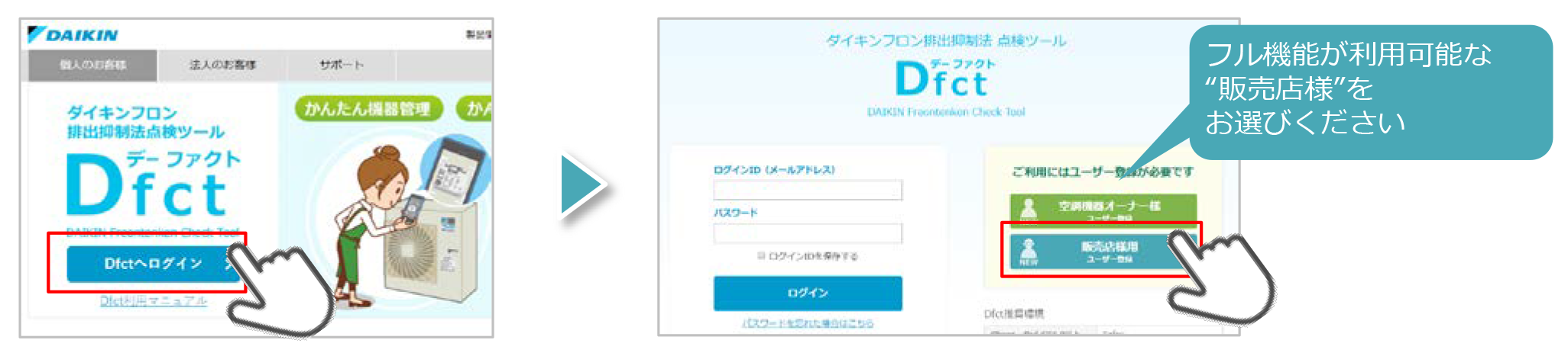 webからhttps://dfct.daikinaircon.com/