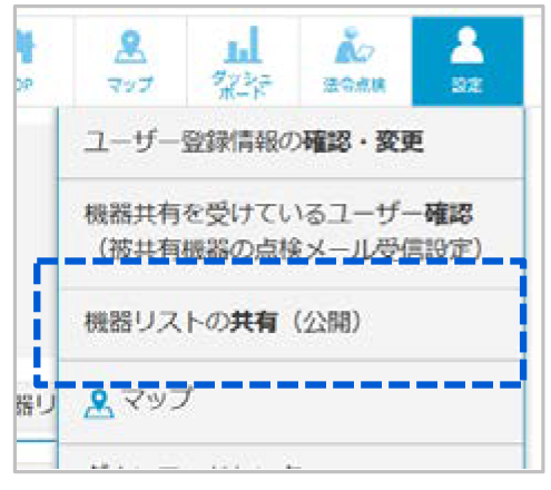 DfctユーザIDは、法人で1つのID複数人での同時利用が可能ですが、「担当者ごとの点検通知を受け取りたい」「自分の担当する機器だを画面表示したい」ニーズの場合、担当者ごとにDfct IDを登録し「共有」機能を利用した管理方法も可能です。