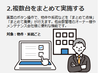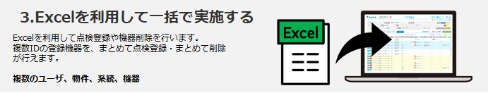 それぞれの登録方法は、以下の機器登録・点検登録に対応しています。●:対応 ×:不可