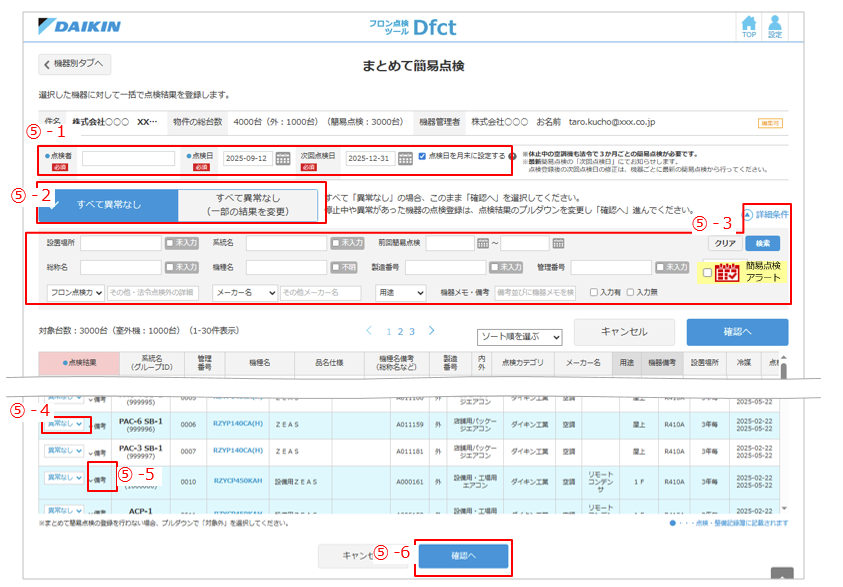 「すべて異常なし」を選択すると、機器全部に「異常なし」が選択されます。 - ⑤ - 3.