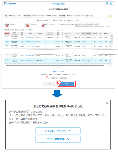 - 処理に時間がかかるため、アップロードセンターで登録を受け付けます。登録処理が完了するとメールや画面の通知でお知らせしますので画面を閉じてお待ちください。
