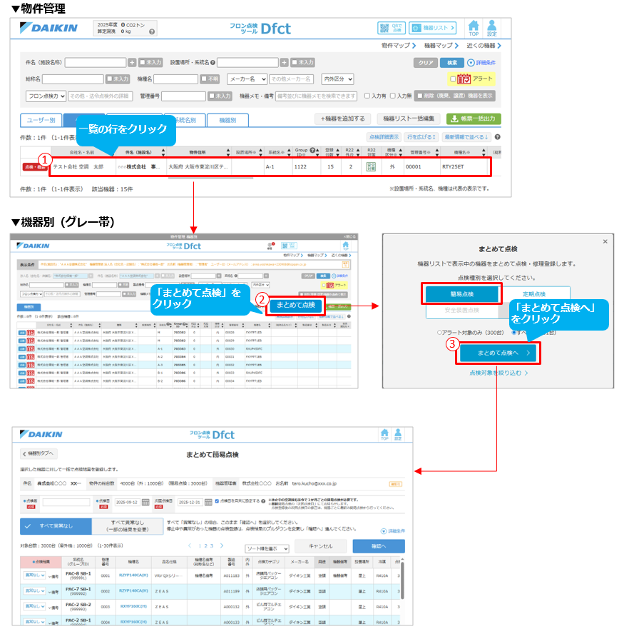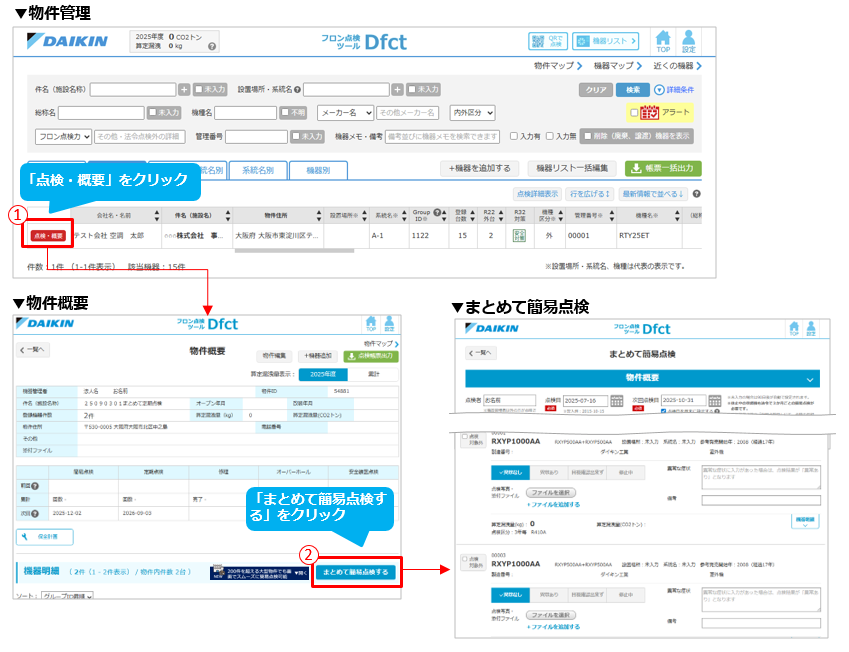 ■ 物件概要または設置場所・系統名概要から「まとめて簡易点検」