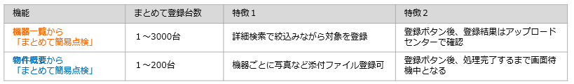 詳しくは、【8】2-2.多台数所持の大型物件など、複数機器をまとめて点検登録をする を参照ください。