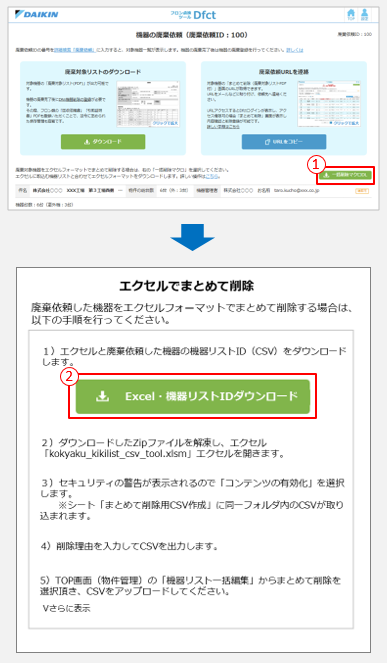- 「Excel・機器リストIDダウンロード」をクリックします。