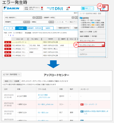 が表示の場合、アップロードしたデータにエラーがありアップロードができていません。