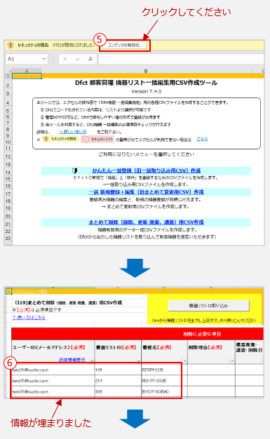 尚、「機器リストID」列は、まとめて削除のキーとなりますので、誤って変更しないよう、注意願います。