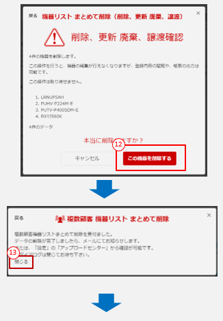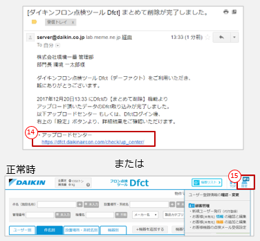 - 一括削除処理が完了すると、メールとDfct画面の通知(13.)でご案内します。