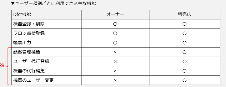 オーナー版と販売店版で利用できるDfct機能が変わりますので、用途によってユーザー種別を選択してください。