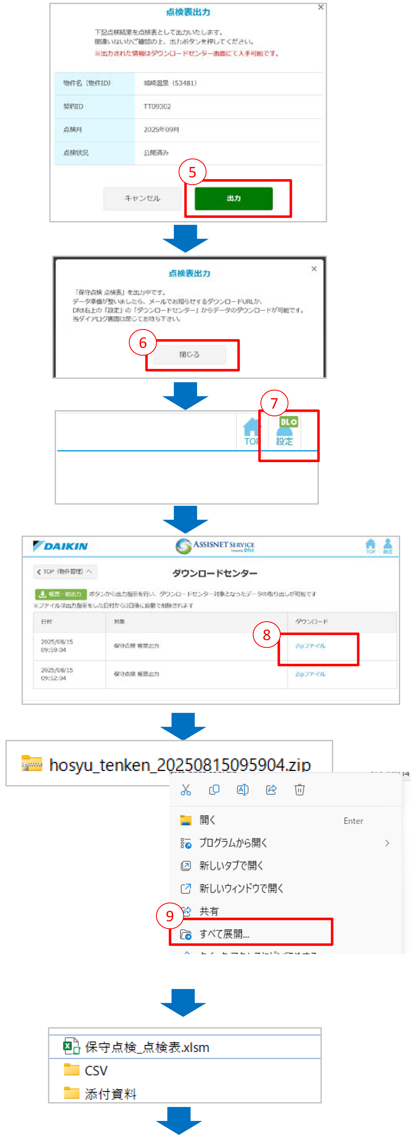 「hosyu_tenken_[日時分秒].zip」という名称のファイルがダウンロードできます。