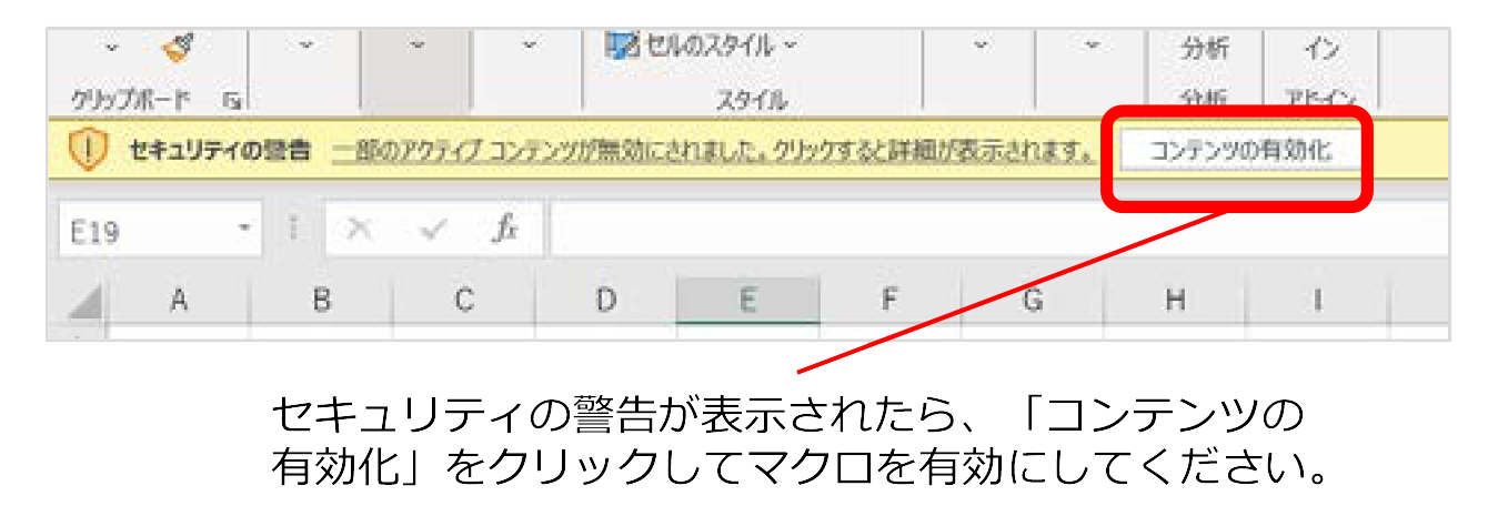Excelのセキュリティレベルによってはマクロが正常に機能しない場合がありますので、マクロの設定を有効にしてからお使いください。