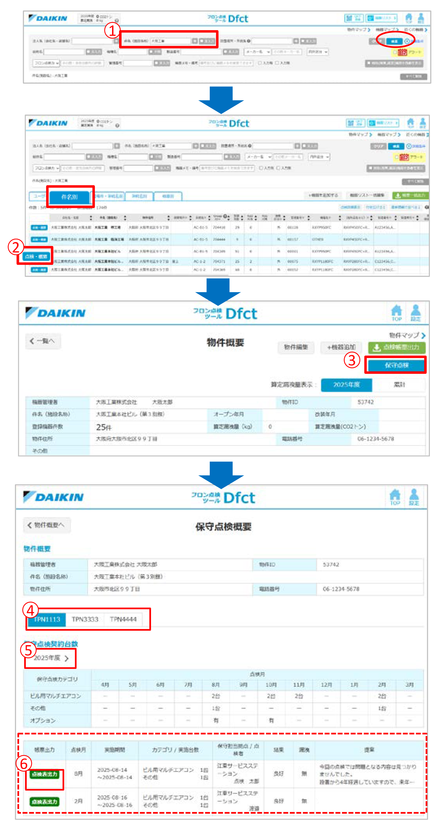 - 「件名別」タブから「点検・概要」ボタンをクリックします。
